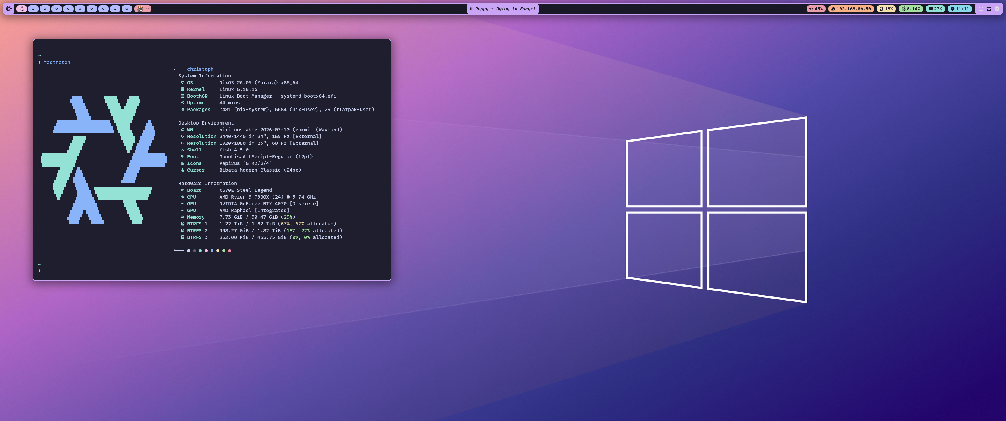 Modular NixOS configuration, using Niri and Waybar for a light desktop.